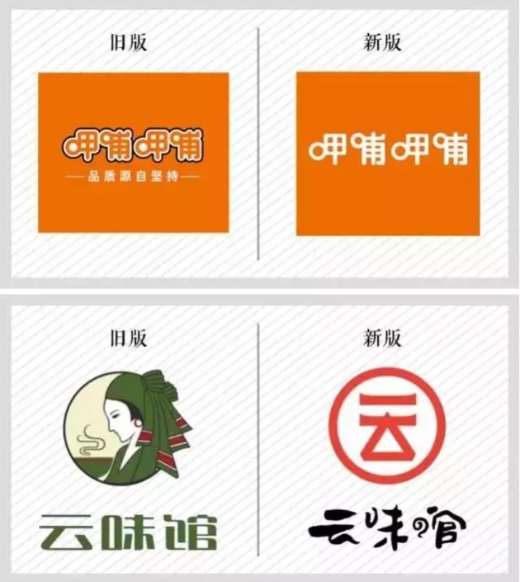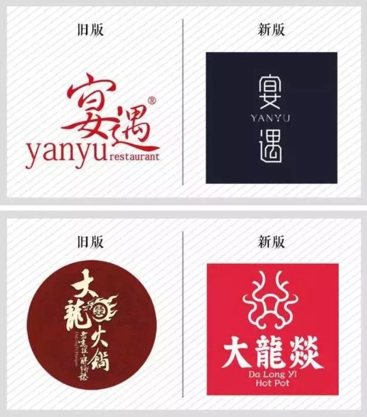 讲到优秀的餐饮品牌LOGO,我们应该很熟悉它的评判标准了,那就是辨识度、易传播性和亲和力三点。以下几张图是才进行升级的知名餐厅,虽然幅度不一,但老板调入的资金均不是小数目,价格都超过30万。
