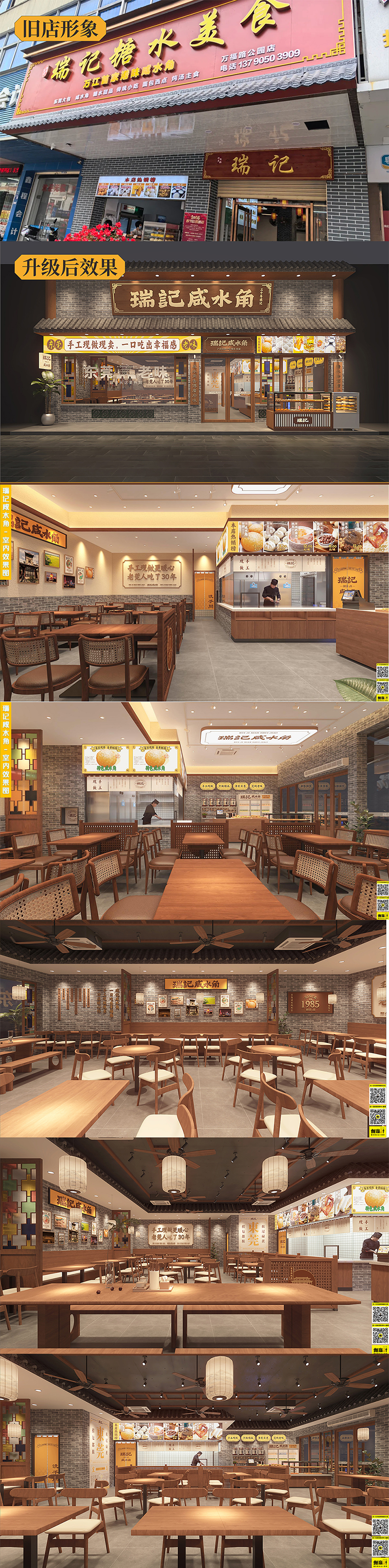 “瑞记咸水角”作为深耕东莞30年的广式小吃品牌,以手工现做的咸水角、经典包点及糖水为核心产品,承载着老莞人的味觉记忆。为应对新消费趋势,餐赢计团队通过品牌战略定位、视觉形象(VI)、空间体验等系统性升级,以“经典年轻化”为核心策略,强化文化认同感,拓展客群边界,将“瑞记”从区域小吃店升级为“广式经典生活方式符号”,实现传统品牌的现代化破局。